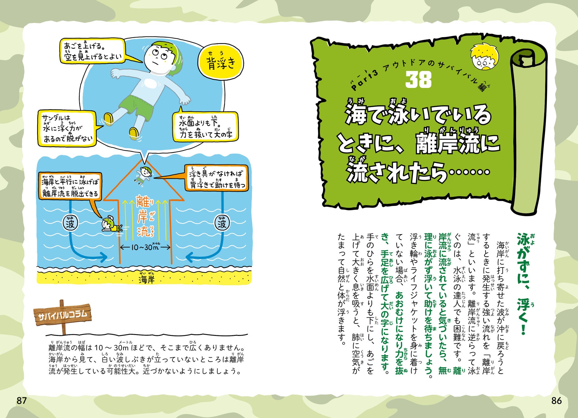 この本には親や教師が近くにいないときでの自然災害やアウトドア・レジャーでの不測の事態、